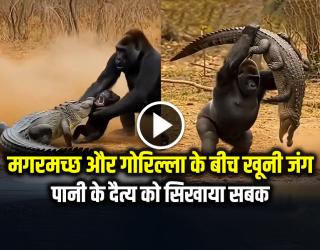 ज़रा हटके : VIDEO: मगरमच्छ और गोरिल्ला के बीच खूनी जंग, पानी के दैत्य को सिखाया सबक, देखें वीडियो