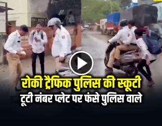 ज़रा हटके : लड़के ने रोकी ट्रैफिक पुलिस की स्कूटी, टूटी नंबर प्लेट पर फंसे पुलिस वाले, देखें वायरल वीडियो
