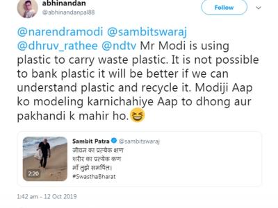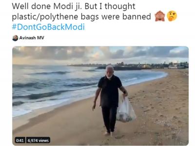 प्रधानमंत्री नरेंद्र मोदी ने शनिवार (12 अक्टूबर) की सुबह तमिलनाडु के महाबलीपुरम ममल्लापुरम बीच पर कचरा उठाते नजर आए। उन्होंने खुद यह विडियो ट्वीट किया था। वीडियो को ट्वीट करते हुए उन्होंने फिट और स्वस्थ रहने का संदेश दिया। इस वीडियो को लेकर सोशल मीडिया पर पीएम मोदी की जमकर तराफी हुई। पीएम मोदी के वीडियो शेयर करने के बाद कई तरह के हैशटैग सोशल मीडिया पर चल रहे थे। मोदी के सारे मंत्रियों ने इस वीडियो को ट्वीट कर सराहना की थी। लेकिन पीएम मोदी अपने इसी वीडियो को लेकर ट्रोल भी हुए। असल में पीएम मोदी जिस प्लास्टिक के बैग में कचरा उठाकर डाल रहे थे, उसी की वजह से उनकी आलोचना हुई।