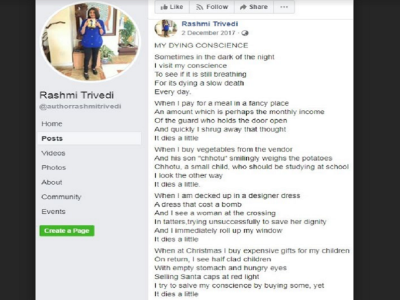 फेसबुक पर लेखिका रश्मी त्रिवेदी का अधिकारिक अकाउंट है जिस पर ये कविता 2 दिसम्बर 2017 को पोस्ट भी की गई है।