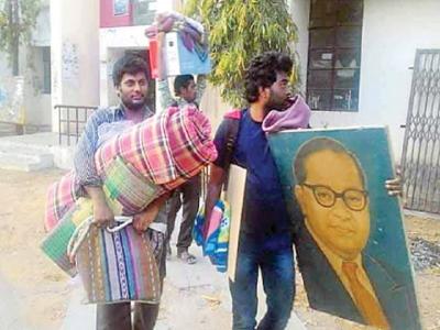 आंबेडकर स्टूडेंट्स एसोसिएशन के नेताओं पर कार्रवाई करते हुए पांच छात्रों को होस्टल खाली करने का आदेश दिया। रोहित वेमुला उन पांच दलित छात्रों में से एक थे, जिन्हे विश्वविद्यालय के होस्टल से निकल जाने का आदेश दिया गया था। होस्टल खाली करके ये छात्र विश्वविद्लाय के चौराहे पर खुले में रहने लगे और फैसले का विरोध करने लगे।
