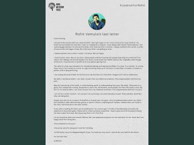 इसी दौरान 17 जनवरी 2016 को रोहित वेमुला होस्टल के कमरे में गए और कुछ समय बाद वहां से उनका शव मिला। रोहिल वेमुला ने आत्महत्या से पहले एक पत्र भी लिखा, जिसने लोगों झकझोर कर रख दिया।