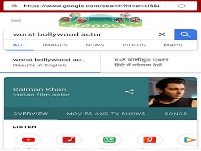 दरअसल, सर्च इंजन गूगल पर जब आप कीवर्ड 'worst bollywood actror' सर्च करते हैं तब सबसे ऊपर जो नाम उभर कर आता है तो वो सलमान खान है। जब हमने भी इसकी पुष्टि के लिए इस कीवर्ड को सर्च किया तब जो परिणाम सामने आया, वो आपके सामने है। अब सवाल ये उठता है कि आखिर गूगल ये परिणाम किस आधार पर दे रहा है? यह एक बड़ा सवाल है।