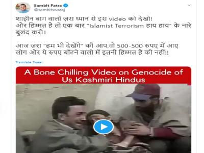 'शाहीन बाग वालों ध्यान से इस वीडियो को देखो', कश्मीरी पंडितों का वीडियो शेयर कर ट्रोल हुए संबित पात्रा