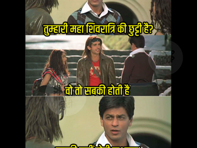 सोशल मीडिया पर बॉलीवुड के किंग कहे जाने वाले शाहरुख खान उर्फ राम प्रसाद शर्मा के मीम काफी लोकप्रिय है। किसी भी मौके पर सोशल मीडिया के यूजर्स 'मैं हूं ना' फिल्म के डायलॉग पर इस्तेमाल जरूर करते हैं और सबसे ज्यादा ये त्योहार के मौके पर इस्तेमाल हैं। 21 फरवरी यानि कल महाशिवरात्रि का त्योहार है। इस बार यूजर्स सोशल मीडिया पर सवाल उठा पूछ रहे हैं कि तुम्हारी महाशिवरात्रि की छुट्टी है?