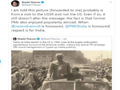 ट्रोल होने के बाद थरूर ने कहा, मुझे पता चला है कि ये तस्वीर (जो मुझे फॉरवर्ड की गई थी) शायद सोवियत संघ दौरे की है न कि अमेरिका दौरे की। यदि ऐसा है तो भी इससे संदेश बदल नहीं जाता है। फैक्ट ये है कि पूर्व प्रधानमंत्री भी विदेशों में लोकप्रिय रहे हैं। जब नरेंद्र मोदी सम्मानित होते हैं तो भारत का प्रधानमंत्री सम्मानित होता है। भारत के लिए सम्मान।'