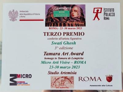 इस प्रदर्शनी में स्वाति को तीसरा पुरस्कार प्रदान किया गया, यह पुरस्कार पोलिश कलाकार "टमारा डे लेम्पिक" के नाम पर जाना जाता है जिसे "मार्गरिता बी सियार्डी" द्वारा रोम में कला विभाग, पोलिश इंस्टिट्यूट और पोलिश एम्बेसी के सहयोग से प्रदान किया गया।