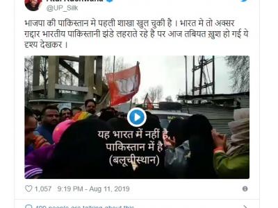 सोशल मीडिया पर इन दिनों एक वीडियो वायरल हो रहा है। जिसमें ये दावा किया जा रहा है कि भारतीय जनता पार्टी(बीजेपी) की पहली शाखा पाकिस्तान में भी खुल चुकी है। वीडियो सोशल मीडिया पर इस दावे के साथ शेयर किया जा रहा है कि बीजेपी ने पाकिस्तान के ब्लूचिस्तान में अपनी शाखा की एक इकाई खोली है। वीडियो में दिख रहा है कि कुछ लोग बीजेपी का झंडा लहरा रहे हैं। इसके साथ ही बीजेपी के समर्थन में नारे लगा रहे हैं। वीडियो में कुछ बुर्का पहने महिलाओं को भी देखा जा सकता है। वीडियो में यह भी लिखा हुआ आ रहा है कि ये भारत नहीं पाकिस्तान का ब्लूचिस्तान है।