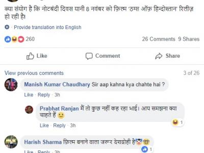 सोशल मीडिया पर इस बात को लेकर लोग चुटकी भी ले रहे हैं। लोगों को कहना है कि क्या इस फिल्म में कहीं ठग का किरदार पीएम मोदी पर तो आधारित नहीं है। वहीं, एक यूजर ने कहा है कि ऐसा भी हो सकता है कि फिल्म की रिलीज डेट बदली जा सके। हालांकि ऐसा कोई अधिकारिक बयान नहीं आया है।