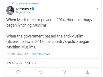 तो कुछ यूजर्स ने देश में हिंदू-मुस्लिम दंगों पर भी मोदी सरकार की आलोचना की है। एक वैरिफाइड यूजर का कहना है, ''पीएम मोदी 2014 से जब से सत्ता में आए हैं तब से 'हिंदुत्व के ठग' मुस्लिमों की लिंचिंग करने में लगे है''