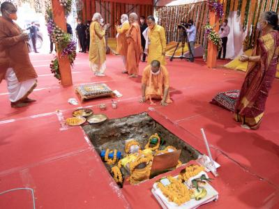 गौरतलब है कि प्रधानमंत्री नरेंद्र मोदी ने बुधवार को यहां भूमि पूजन कर ‘श्री राम जन्मभूमि मंदिर’ निर्माण की आधारशिला रखी और कहा कि आज सदियों का इंतजार खत्म हुआ है। राम मंदिर को राष्ट्रीय एकता व भावना का प्रतीक और भारतीय संस्कृति की समृद्ध विरासत का द्योतक बताते हुए उन्होंने कहा कि यह न सिर्फ आने वाली पीढ़ियों को आस्था और संकल्प की प्रेरणा देगा, बल्कि अनंतकाल तक पूरी मानवता को प्रेरित करेगा। दशकों तक हिन्दू-मुस्लिम समुदायों के बीच विवाद का केंद्र रहे श्री राम जन्मभूमि स्थल पर जब मोदी पूजा-अर्चना कर रहे थे, उस वक्त देशभर के लोग अपने घरों में टेलीविजन से चिपके रहे और इस पल के गवाह बने।