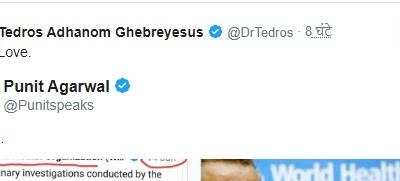 WHO के चीफ ने लिखा -'LOVE' तो सोशल मीडिया पर लोगों का फूटा गुस्सा, यूजर बोले- 'सिर्फ चीन से...'