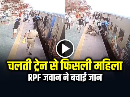 ठळक मुद्देVIDEO: चलती ट्रेन से फिसली महिला, RPF जवान ने बचाई जान, देखें वीडियो
