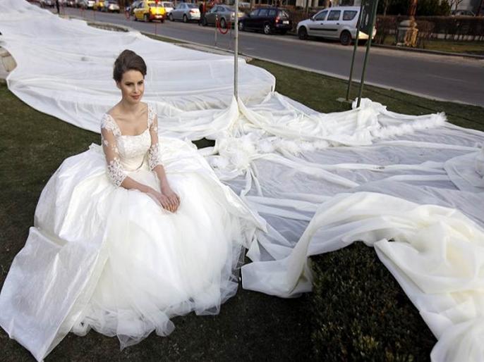 दुनिया की सबसे लंबी वेडिंग ड्रेस के लिए फ्रांस के कॉड्री शहर ने पूरे 11 साल बाद गिनीज वर्ल्ड रिकॉर्ड में अपना नाम दर्ज कराया है। 9 दिसंबर को यहां वर्ल्ड की सबसे लंबी वेडिंग ड्रेस का अनावरण किया गया। इस ड्रेस की लंबाई इतनी है कि यह हिमालय की माउंट एवरेस्ट की चोटी को भी ढक सकती है।