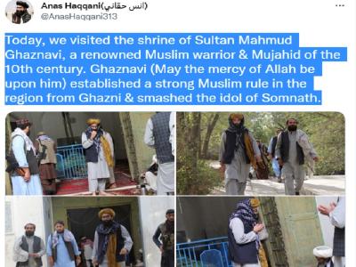 हक्कानी नेटवर्क के प्रमुख अनस हक्कानी ने अपने ट्विटर हैंडल पर महमूद गजनवी की कब्र के दौरे की कुछ तस्वीरें पोस्ट की है। इसमें हक्कानी ने गजनवी को प्रसिद्ध मुस्लिम योद्धा बताते हुए सोमनाथ मंदिर की मूर्तियों को तोड़े जाने की घटना का भी जिक्र किया।