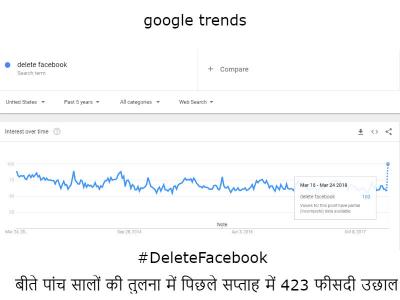 मैशबल डॉट कॉम के अनुसार गूगल पर Delete Facebook इस कीवर्ड को बीते पांच सालों में इतना नहीं ढूंढ़ा गया था, जितना कैंब्रिज एनालिटिका कांड सामने आने के बाद ढूंढ़ा गया है।