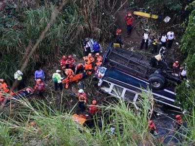 इस घटना में अन्य लोग गंभीर रूप से घायल हो गए। बस प्रोग्रेसो से आ रही थी। एक अधिकारी ने बताया कि पीड़ितों में बच्चे भी शामिल हैं। राष्ट्रपति बर्नार्डो एरेवालो ने घटना पर शोक व्यक्त किया तथा एक दिन का राष्ट्रीय शोक घोषित किया है। ग्वाटेमाला सिटी में सोमवार को 75 लोगों को ले जा रही एक बस खड्ड में गिर गई। आपातकालीन कर्मचारी 10 घायल लोगों को बस से निकालने में कामयाब रहे।