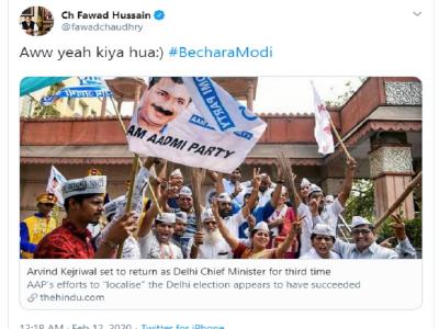 दिल्ली विधानसभा चुनाव 2020 के नतीजे सामने आ गए हैं। आम आदमी पार्टी ने प्रचंड बहुमत से जीत हासिल की है। दिल्ली की 70 विधानसभा सीट में आप ने 62 सीटों पर जीत हासिल की है और बीजेपी 8 सीटें जीती है। बीजेपी के चुनाव हारने पर पाकिस्तान के विज्ञान एवं तकनीक मंत्री फवाद चौधरी ने एक मजाकिया ट्वीट किया है और प्रधानमंत्री नरेंद्र मोदी का मजाक बनाया है।
