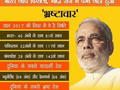ट्रांसपेरेंसी इंटरनेशनल की भ्रष्ट देशों की लिस्ट में भारत नीचे फिसला, मोदी राज में कम नहीं हुआ 'भ्रष्टाचार'